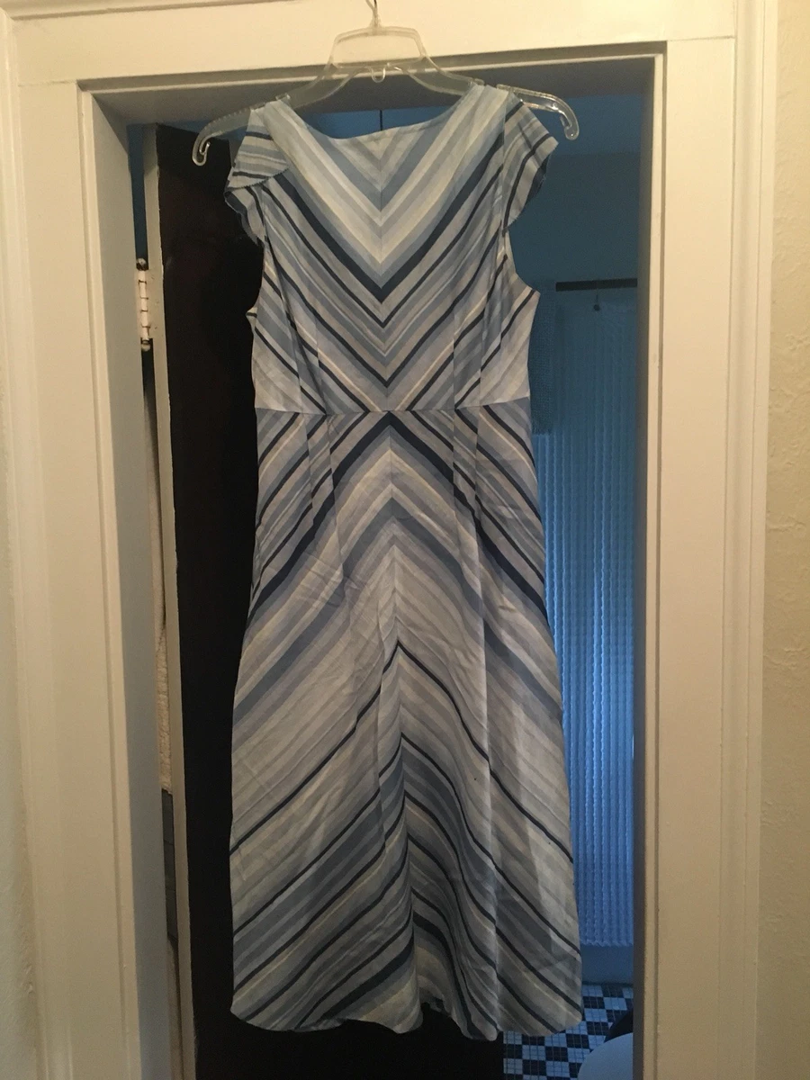 J Crew Women S V Neck Flutter Cap Sleeve Blue Stripe Dress Sz P8 Ebay