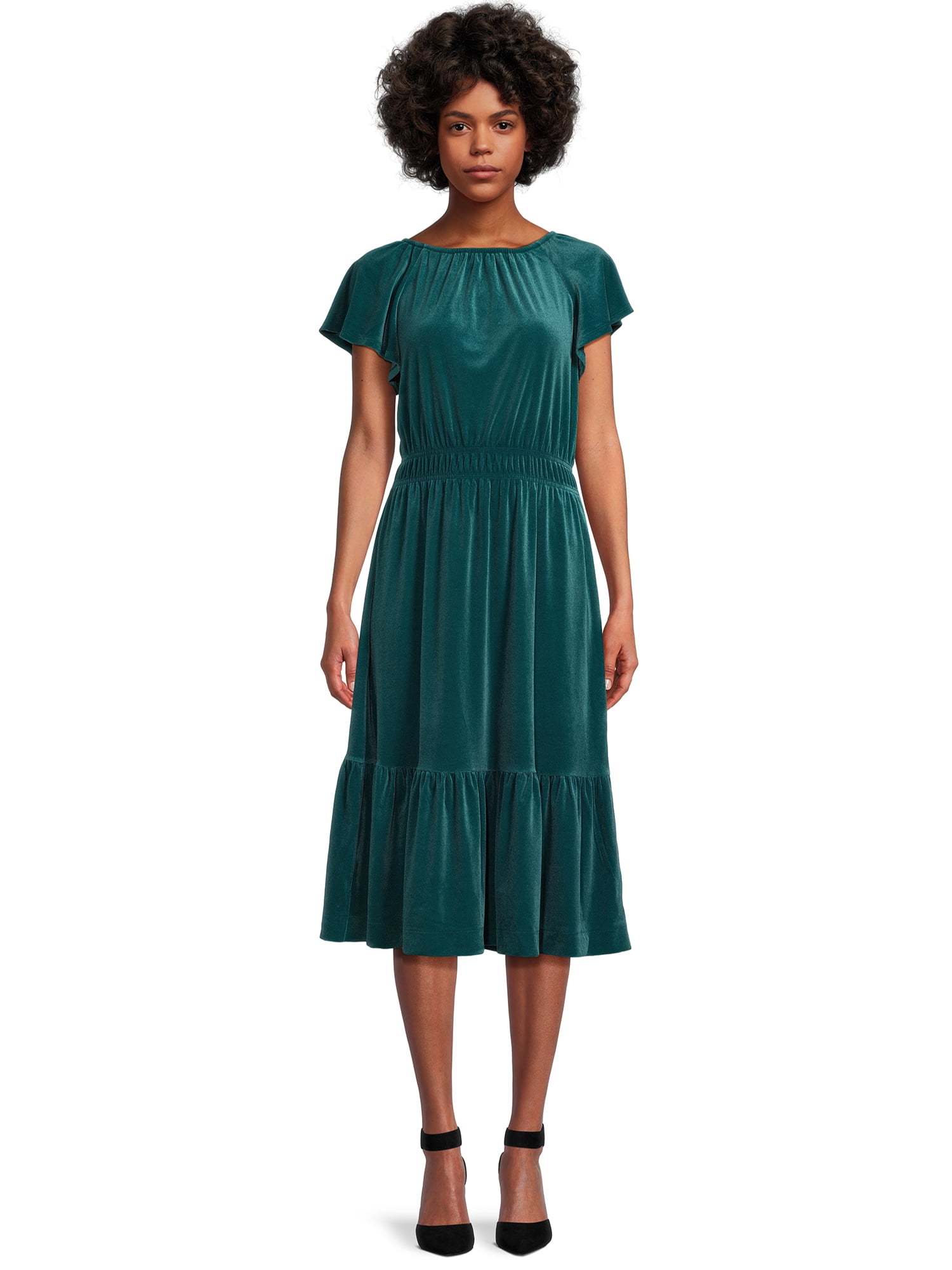Time And Tru Women S Velvet Flutter Sleeve Dress Sizes Xs Xxxl Walmart Com